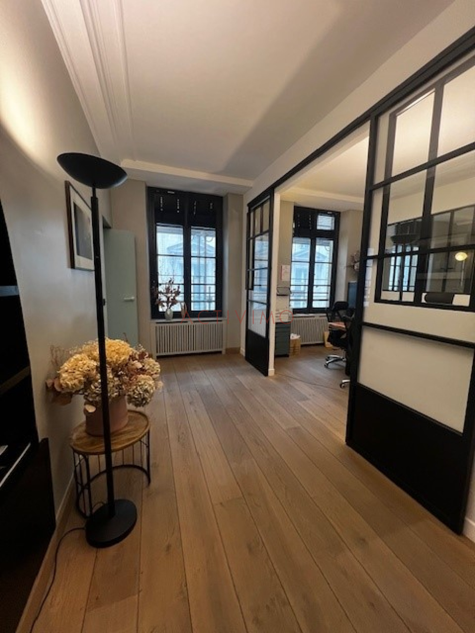 Rue Vivienne Superbe locaux commerciaux à usage de bureaux au 3ème étage avec ascenseur d'un immeuble ancien avec code et interphone composé de 2 entrées indépendantes, actuellement aménagé en 4 bureaux dont un avec grande cuisine, une salle de douche, 2 wc, dégagement avec placards, nombreux rangements. Chauffage, eau, électricité et internet inclus. Locaux en excellent état. Bail classique 3.6.9 ans Loyer Trimestriel 11 800 € + 1 611 € de charges + TVA Disponible immédiatement. Possibilité de louer en sus un emplacement de parking Place de la Bourse, places électriques Belib au pied de l'immeuble et nombreux transports à proximité.