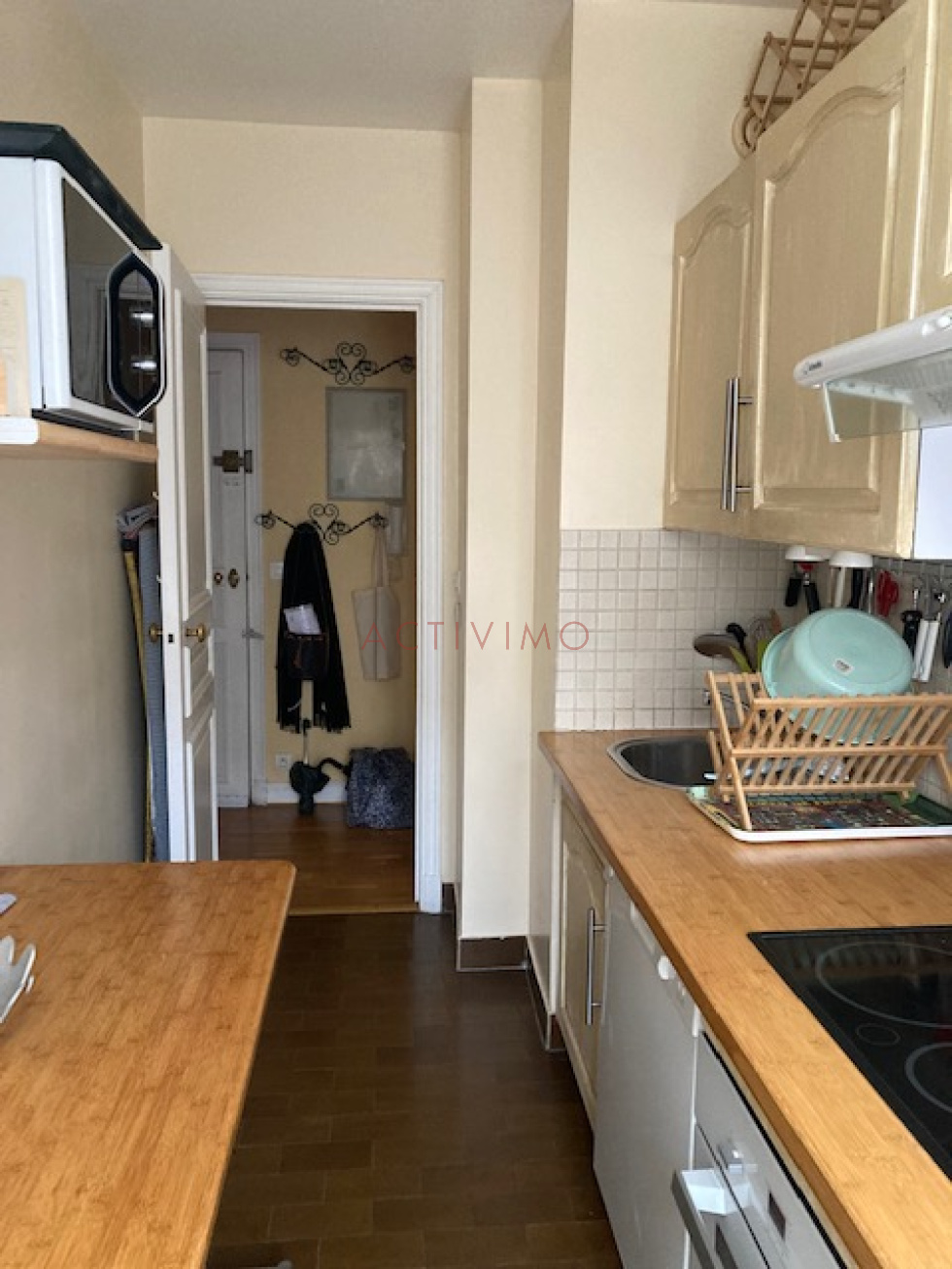 Paris 5ème, Rue Gracieuse, au 2ème étage avec ascenseur d'un bel immeuble 1980 (digicodes + gardien), Grand Studio/2 Pièces de 41,20 m² loué MEUBLE, composé d'une entrée, une grande pièce avec placards et séparation avec le coin chambre, une cuisine entièrement équipée (réfrigérateur/congélateur, four, plaques, hotte, lave-vaisselle, lave-linge), une salle de bains, wc séparé. Chauffage & eau chaude COLLECTIFS, inclus dans les charges. Appartement très agréable, calme, sur cour, peu de vis-à-vis. Disponible fin décembre/début janvier.