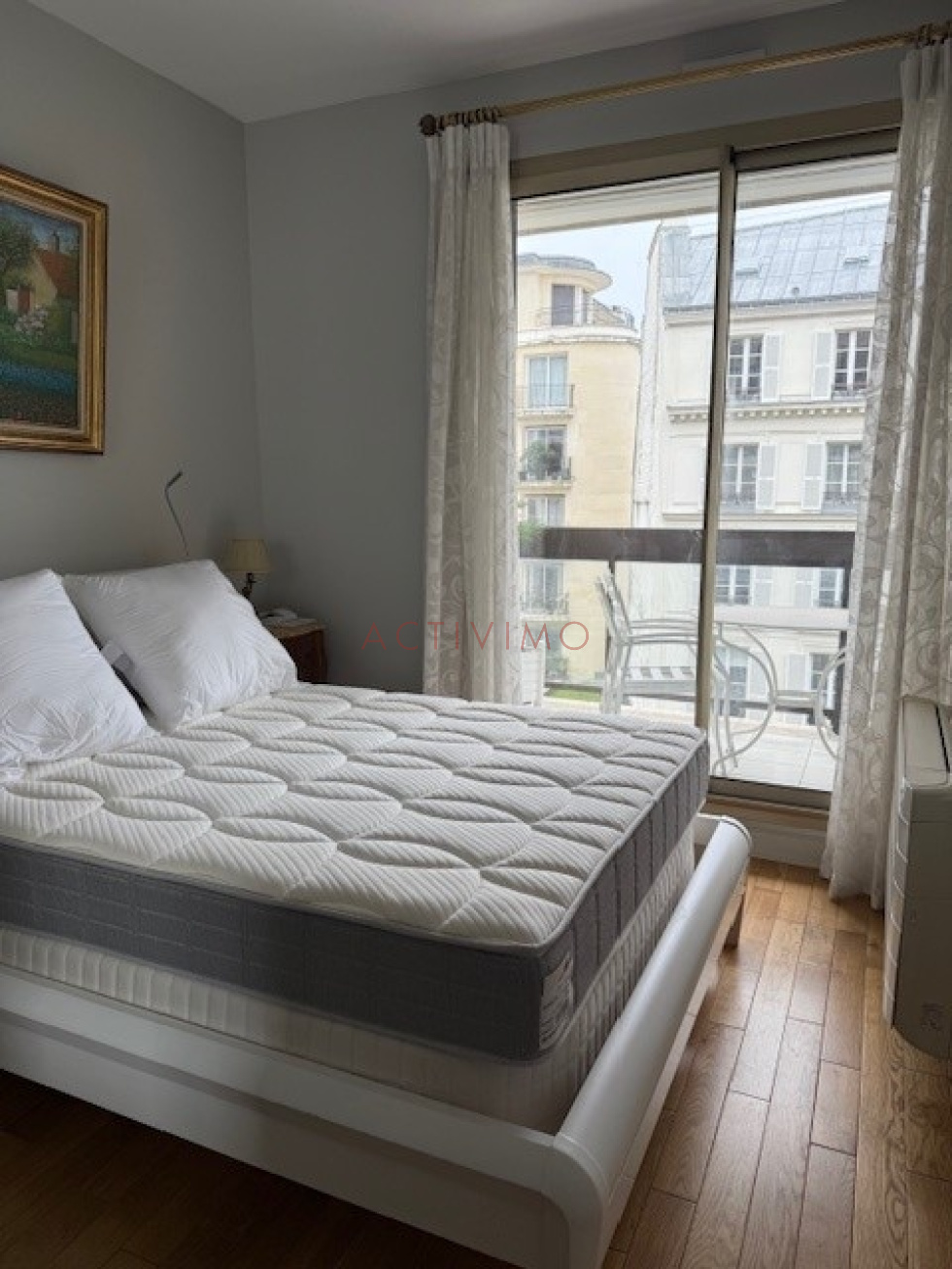 Neuilly sur Seine à deux pas de la Ligne 1, Pont de Neuilly, Rue Pierret, au 3ème étage avec ascenseur d'un immeuble récent de très bon standing (construction Lasserre), sécurisé avec interphone, digicodes et gardien, l'agence ACTIVIMO vous propose à la location un très bel appartement de 2 pièces de 45 m² Loi Carrez + 12 m² d'extérieur (deux balcons). Cet appartement se compose d'une entrée avec placard, un séjour avec grand balcon, 1 chambre avec grand placard et grand balcon, une cuisine entièrement équipée, une salle de douche avec wc. Appartement très agréable, calme et lumineux, parquet, sur rue. Chauffage et eau chaude individuels électriques, climatisation tout compris dans les charges. Possibilité de faire un bail code civil ou bail de fonction. Pour toute information complémentaire ou prise de rendez-vous nous contacter au 01.53.59.58.18 ou 06.63.51.63.46.