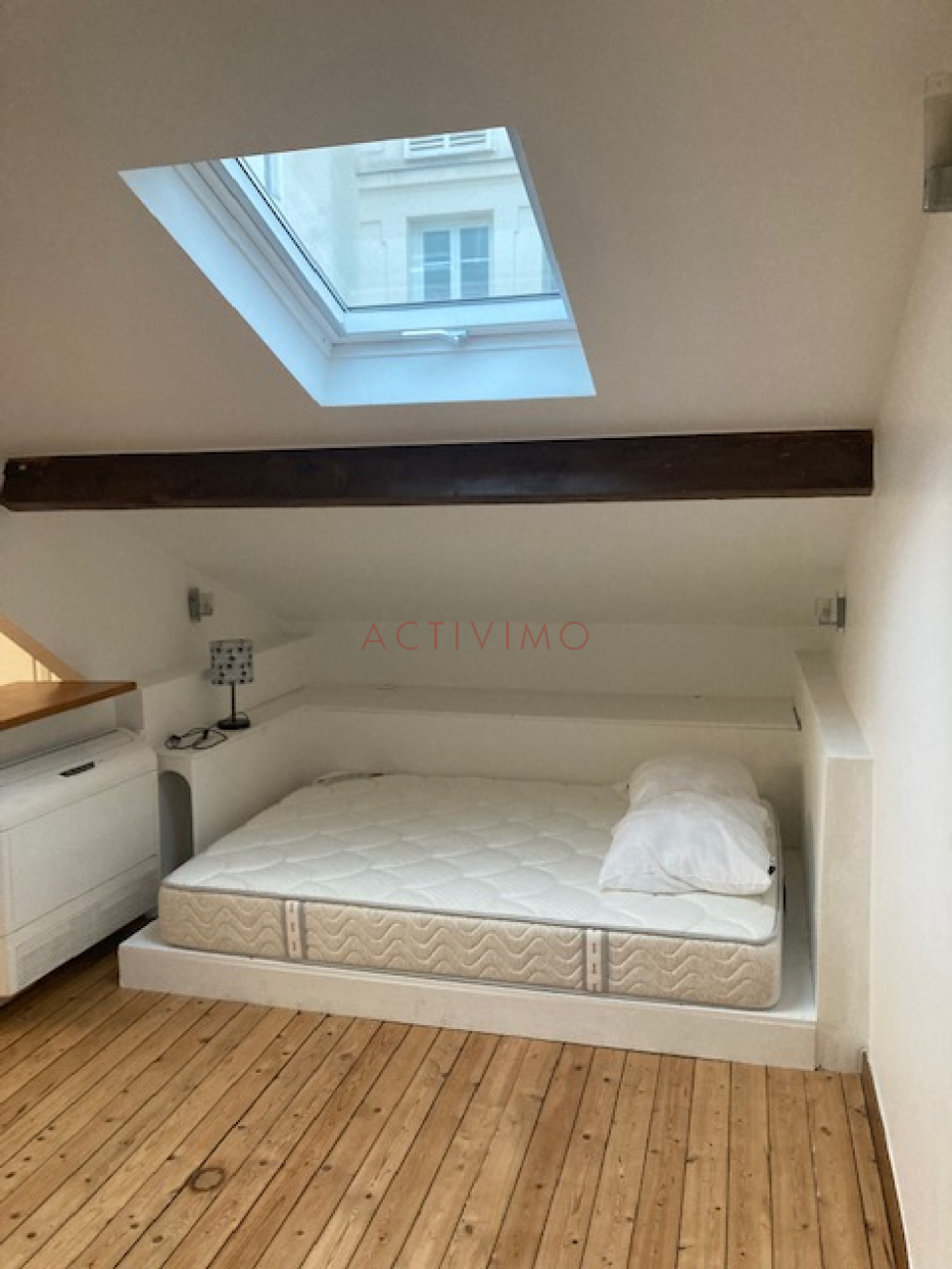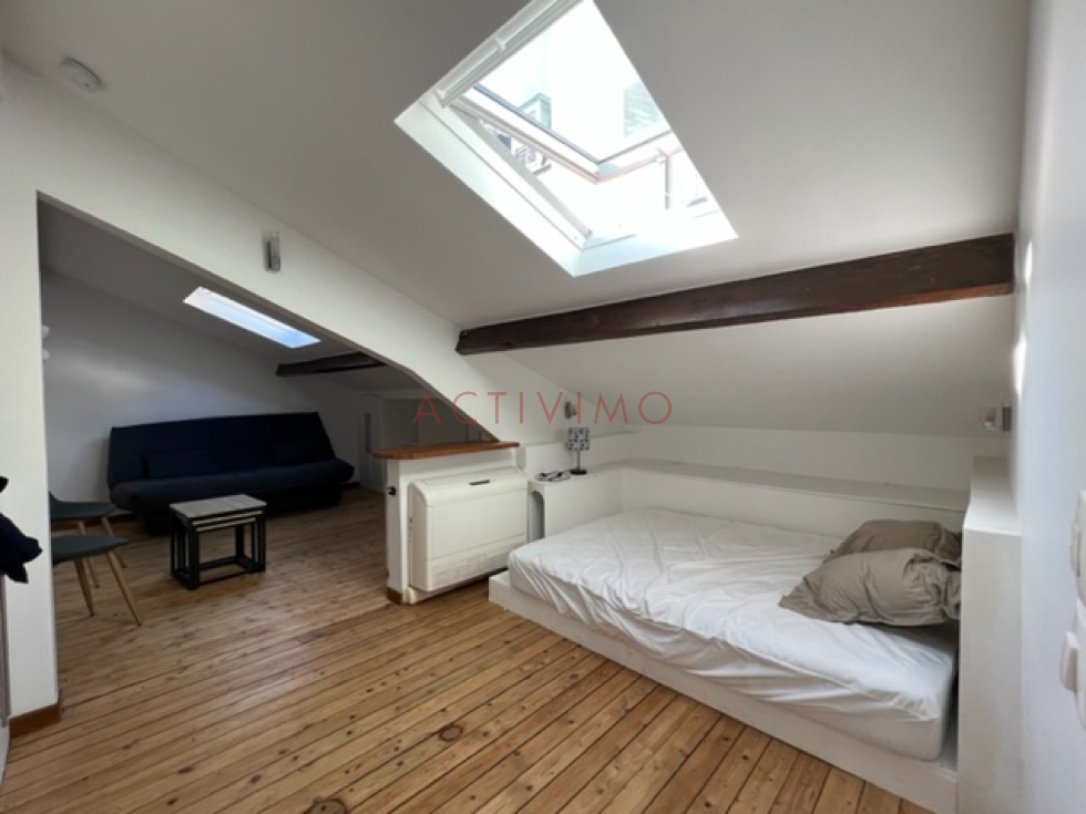 BAIL CODE CIVIL (résidence secondaire ou étudiants). Merci de ne pas nous contacter si vous n'êtes pas éligible. Montmartre Quartier Lamarck Caulaincourt - Rue Joseph de Maistre, Au 4ème et dernier étage SANS ascenseur d'un bel immeuble ancien sécurisé avec codes et gardienne, Beau studio de 34 m² au sol / 17m² Loi carrez, composé d'une grande pièce principale mansardée avec 2 velux, nombreux rangements, salle de douche avec wc sanibroyeur récent, cuisine équipée séparée avec fenêtre. Appartement atypique 34.18 m² au sol - Loi Carrez 16.78m². Lumineux et calme. Parquet, Climatisation réversible. Bel immeuble Pierre de Taille, très bien entretenu avec code et gardienne, parties communes très propres. BAIL CODE CIVIL UNIQUEMENT. Envoi de dossier à info@activimo.com