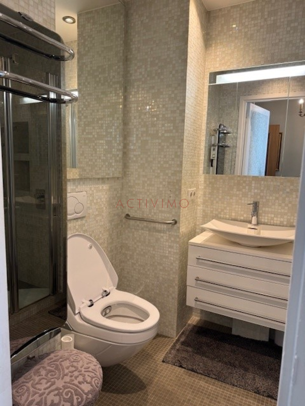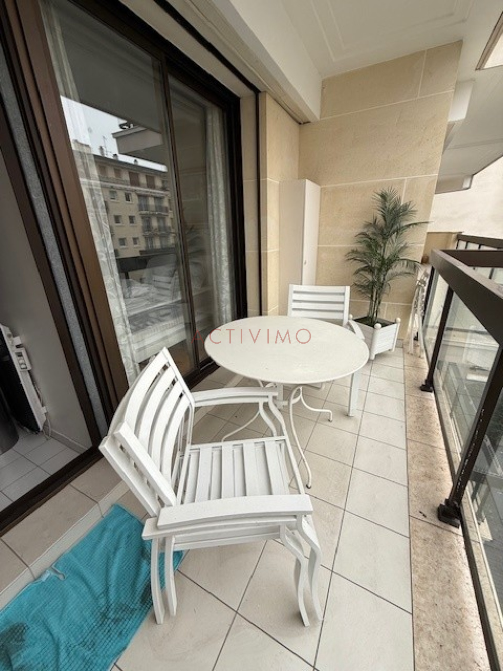 Neuilly sur Seine à deux pas de la Ligne 1, Pont de Neuilly, Rue Pierret, au 3ème étage avec ascenseur d'un immeuble récent de très bon standing (construction Lasserre), sécurisé avec interphone, digicodes et gardien, l'agence ACTIVIMO vous propose à la location un très bel appartement de 2 pièces de 45 m² Loi Carrez + 12 m² d'extérieur (deux balcons). Cet appartement se compose d'une entrée avec placard, un séjour avec grand balcon, 1 chambre avec grand placard et grand balcon, une cuisine entièrement équipée, une salle de douche avec wc. Appartement très agréable, calme et lumineux, parquet, sur rue. Chauffage et eau chaude individuels électriques, climatisation tout compris dans les charges. Possibilité de faire un bail code civil ou bail de fonction. Pour toute information complémentaire ou prise de rendez-vous nous contacter au 01.53.59.58.18 ou 06.63.51.63.46.