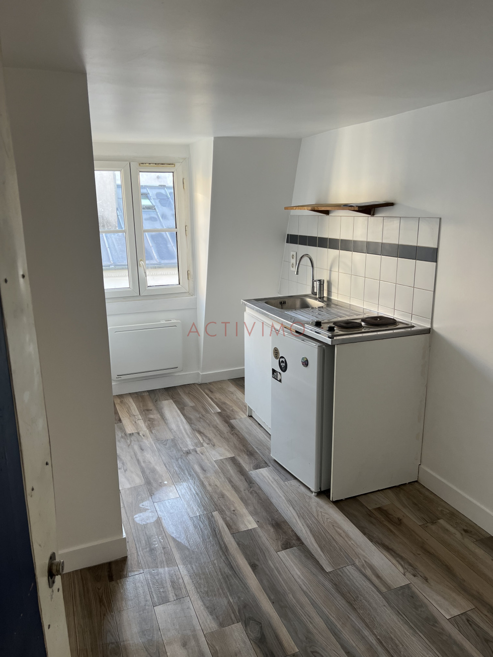 BAIL CODE CIVIL - Résidence secondaire & étudiants uniquement ! Merci de ne pas nous contacter si vous n'êtes pas éligible (CDI/CDD résidence principale). WC PRIVATIFS SUR LE PALIER Marais - Quartier Hôtel de Ville, Rue Rambuteau, l'Agence ACTIVIMO vous propose à la location un studio formé de deux chambres de service, d'une superficie de 16,20 m² (14,80 Loi Carrez) au 6ème et dernier étage SANS ascenseur d'un immeuble ancien sécurisé avec digicode. Tout juste rénové, il se compose d'une entrée directe dans la pièce principale aménagée avec kitchenette semi-équipée (plaque et réfrigérateur), d'une partie chambre avec douche et lavabo. WC privatifs mais sur le palier. Studette rénovée, peintures blanches neuves, convecteurs neufs, combles isolées. Chauffage et eau chaude individuels électriques. Double vitrage, DPE E en énergie primaire, C en énergie finale. Disponible immédiatement. WC privatifs SUR LE PALIER. Vous pouvez envoyer votre dossier par email à info@activimo.com. BAIL CODE CIVIL UNIQUEMENT.