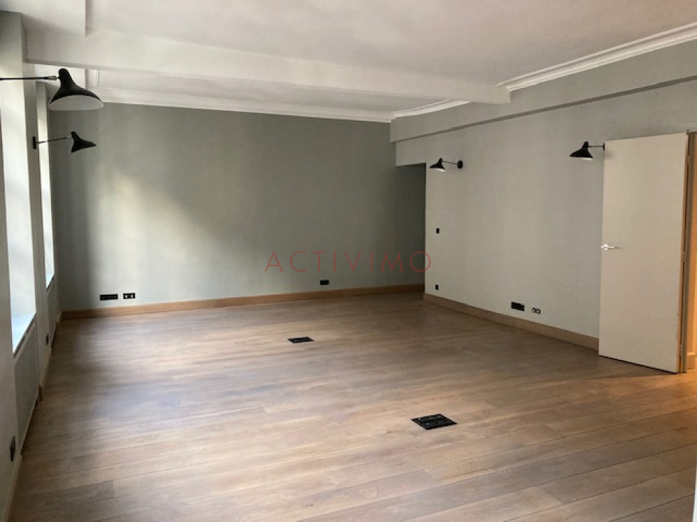 Rue Vivienne Superbe locaux commerciaux à usage de bureaux au 3ème étage avec ascenseur d'un immeuble ancien avec code et interphone composé de 2 entrées indépendantes, actuellement aménagé en 4 bureaux dont un avec grande cuisine, une salle de douche, 2 wc, dégagement avec placards, nombreux rangements. Possibilité de réaménager l'espace. Chauffage, eau, électricité et internet inclus. Locaux en excellent état. Bail classique 3.6.9 ans Loyer Trimestriel 11 800 € + 1 611 € de charges + TVA Disponible immédiatement. Possibilité de louer en sus un emplacement de parking Place de la Bourse, places électriques Belib au pied de l'immeuble et nombreux transports à proximité.